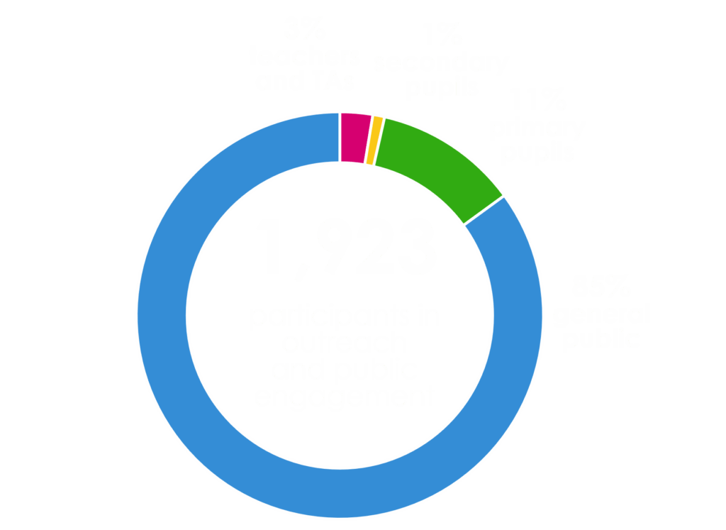 Our vibrant outreach programme is helping to bolster the future talent pipeline by raising awareness of photonics technologies at an early age. Through school workshops, teacher training, and festivals, in 2024/5 we engaged face-to-face with nearly 2,000 teachers, school children, and members of the public.