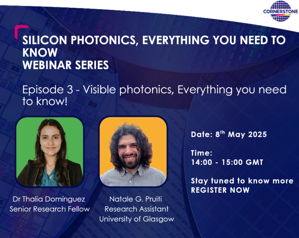 Date: 28/02/2024 Time: 12:00 – 13:00Join Prof. David Thomson for an overview of the high speed active component capability within the standard CORNERSTONE active platform, as well as some potential applications. He will then showcase some recent research results produced using such components in these application areas. Then Dr Weiwei Zhang will introduce the customised high speed active component capability within the CORNERSTONE active platform. As well as showcasing the recent research results, potential impact and evolution towards future silicon photonics applications.